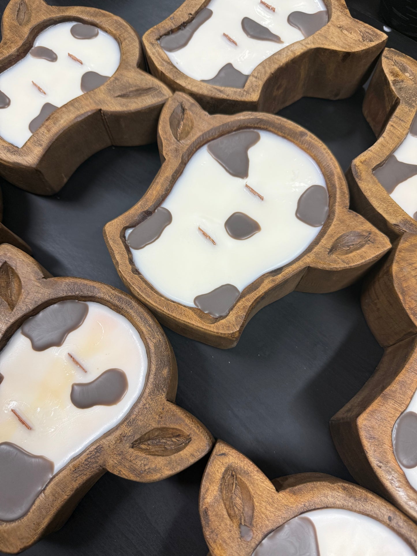 Saddle up for the perfect mix of western charm and cozy sophistication. Our Cow Head Dough Bowl Candle is a true statement piece. Hand carved, hand painted, and hand poured in Arizona. Each candle is filled with our clean burning coconut soy wax blend, creating a one of a kind piece that’s as beautiful as it is functional.